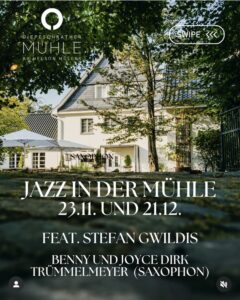 … Der Kultursonntag hält Einzug bei Nelson Müller: An ausgewählten Sonntagen bietet die Diepeschrather Mühle in Bergisch Gladbach ein besonderes Kulturprogramm an. Erstmals am 23.11.25 verwandelt sich der Konrad-Adenauer-Saal in einen stimmungsvollen Jazz-Club.